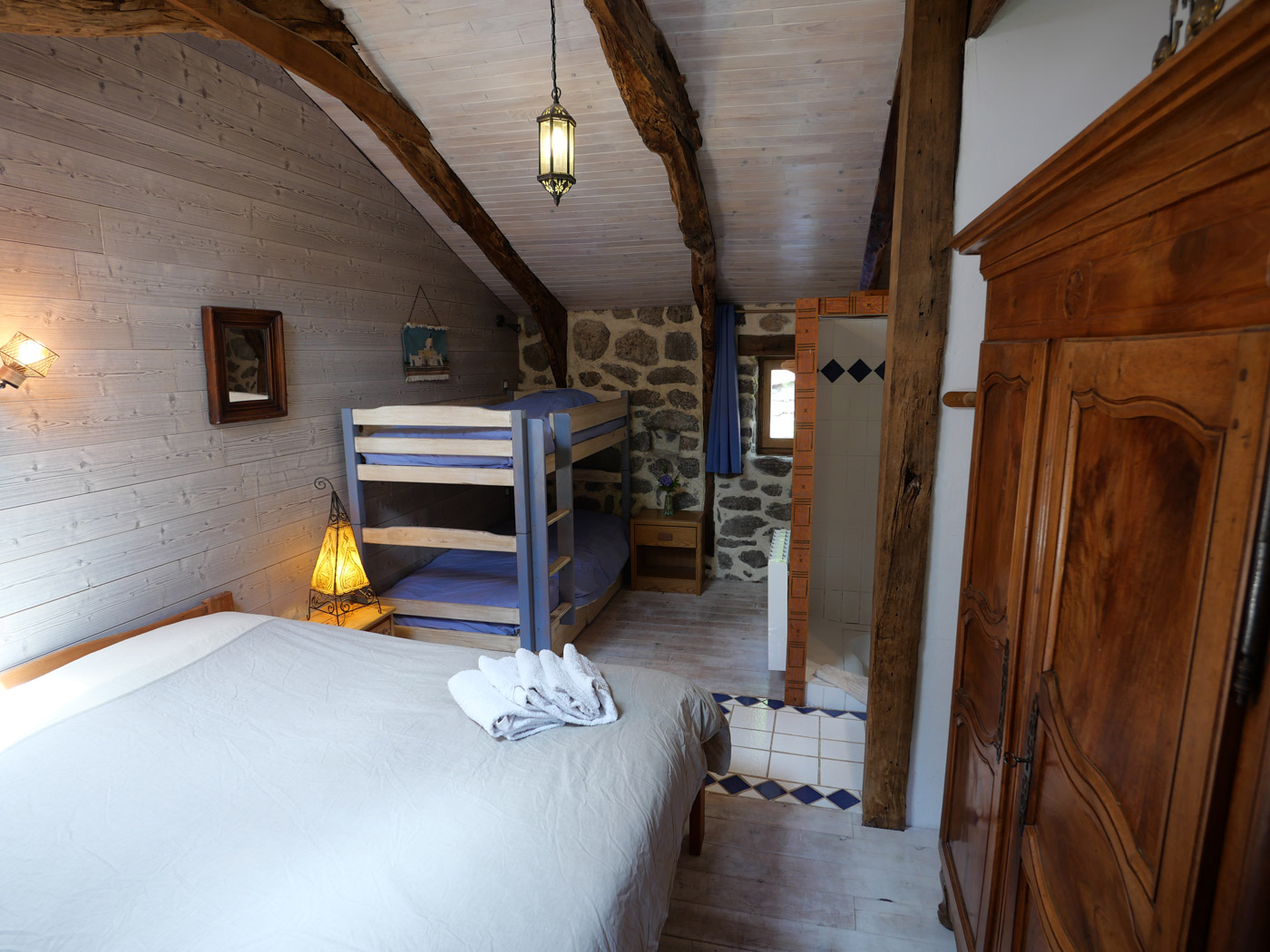 Notre gîte possède 5 chambres personnalisées, chacune équipée d’une douche et pouvant accueillir de 2 à 5 personnes.