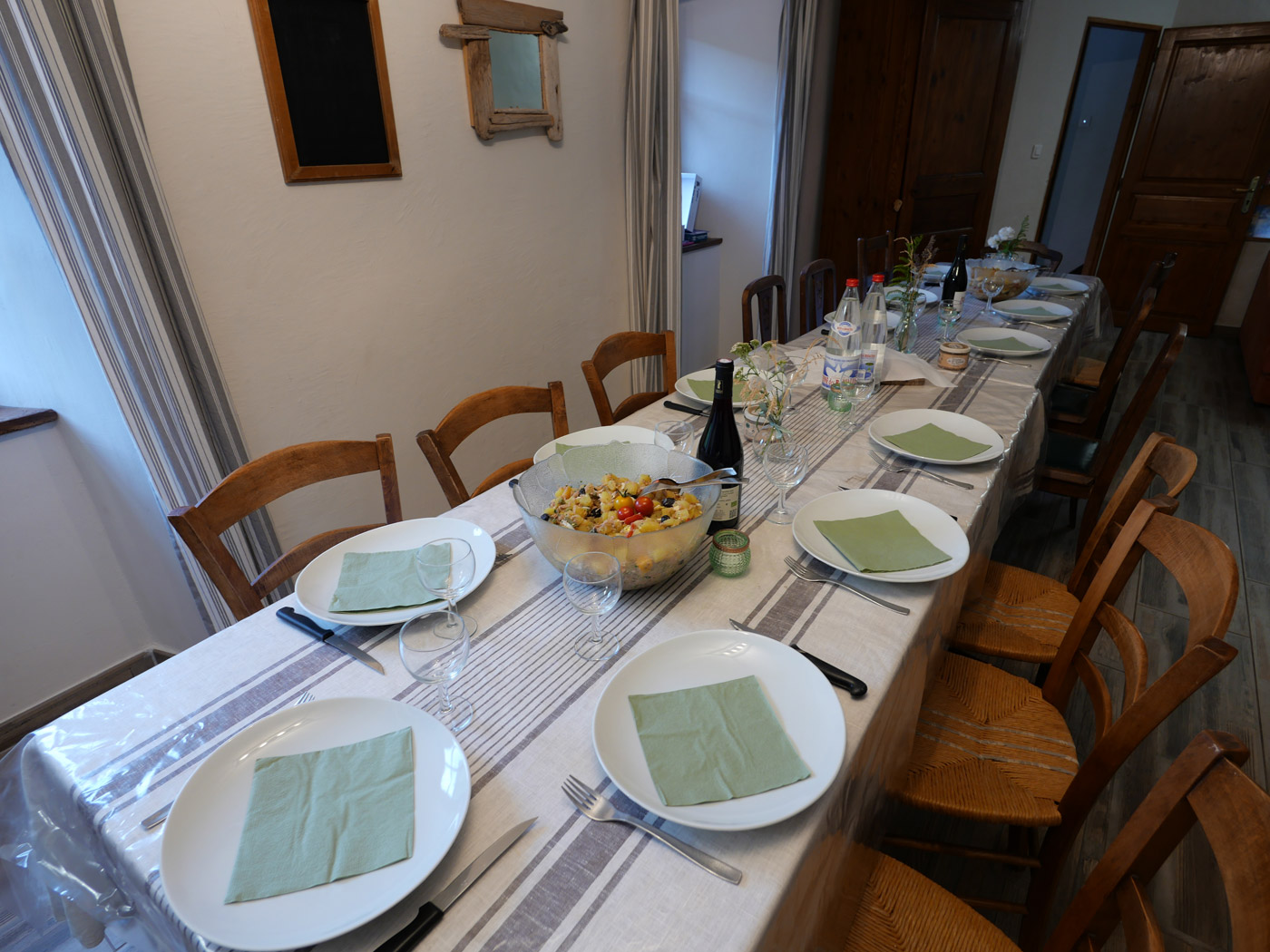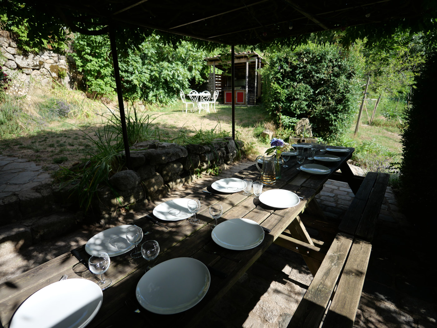 Une terrasse, orientée plein sud, ombragée par une glycine centenaire, vous accueillera pour vos repas pris dans le jardin.